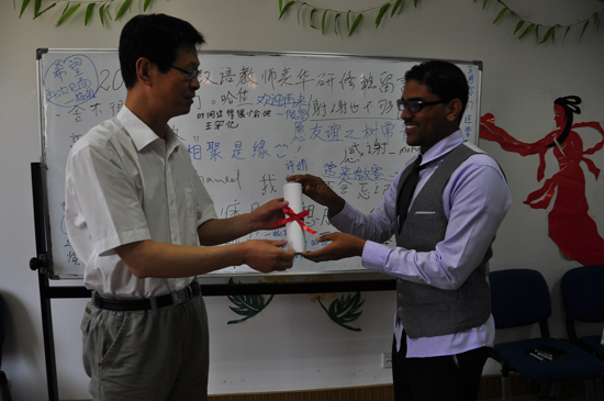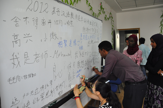 结业典礼上,回放了苏丹12位汉语教师来华学习、生活及文化体验的影像资料,总结了研修班的学习成果。研修班学员纷纷表示,在学院的精心安排和授课教师的辛勤努力下,此次研修收获颇多,对他们今后的汉语教学有很大的帮助。回国后,他们一定将学到的教学方法和专业知识运用到教学实践中,努力做一名合格的汉语授课教师。苏丹汉语教师阿德在留言板上这样写道:“我想成为一名像你们一样优秀的汉语教师”。