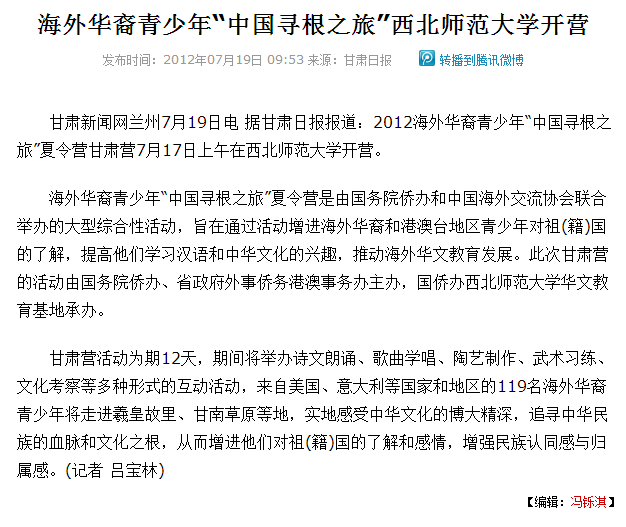 【甘肃日报】海外华裔青少年“中国寻根之旅”金年会手机登录开营